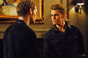 4. Братья Сальваторе и их момент перемирия. В последнее время между Дэймоном и Стефаном было так много драк, что было странно наблюдать как они мирно шагают бок о бок по лесам Мистик Фоллс. Братья отклонили предложение Клауса о защите Елены. Дэймон спас жизнь Стефану. Они направлялись к пещере, чтобы узнать, кто (или что) было в четвертом гробу, когда, как обычно, тема разговора перешла на Елену. «Я люблю ее, Дэймон», - сказал Стефан. «Я тоже», - ответил старший брат. В этот момент все могло снова дойти до драки. Но обошлось. Очевидно, понимать, что вы оба влюблены в одну женщину – это одно. А выразить словами – совсем другое. 3. Воссоединение семьи Древнейших, часть 1 Очевидно, Клаус встретил достойного соперника в восставшем брате Элайдже. Не желая доверять тому, кто ударил ему ножом в спину, Элайджа вытащил клинки из упокоенных братьев и сестры, чтобы противостояние было полным. Финн проткнул ножом ладонь Клауса, Ребекка засунула второй нож ему в живот, а Коул, «проспавший» 900 лет, одарил Клауса убийственным взглядом. Отличный получился «на посошок» после жуткого ужина с братьями Сальваторе.
